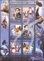 动物—蝙蝠系列一,犬蝠、灰头狐蝠、蝙蝠侠扮演者克里斯蒂安·贝尔、吸血僵尸扮演者贝拉·卢戈西及编剧布拉姆·史托克小版张(6票)