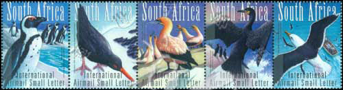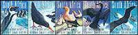 南非的海洋鸟类和海岸鸟类,斑嘴环企鹅、黑翻石鹬、南非塘鹅、南非鸬鹚及黑背海鸥5联