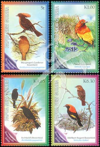 鸟类—园丁鸟,冠园丁鸟、辉亭鸟、阿氏园丁鸟及贝氏辉亭鸟4全