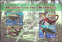 爬行动物,丽龟、变色树蜥、印第安狼蛇及大海龟小版张(4票)