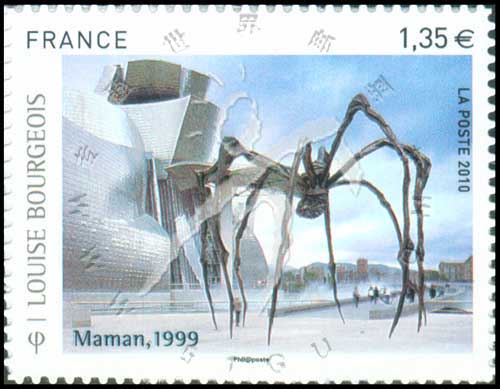 艺术系列,女性艺术家路易丝·布尔乔亚1999年大蜘蛛雕塑作品《Maman》不干胶自贴票1全