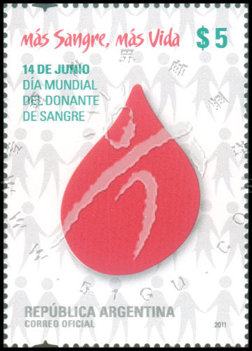 世界献血日,血滴及人形剪影釉质涂层票1全