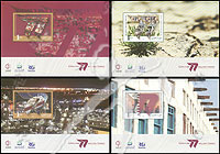 卡塔尔每年向他国提供770万吨的液化天然气,数字“77”及建筑等4枚小型张