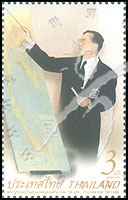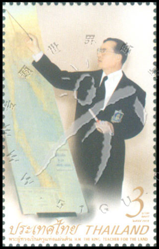 为教育事业做出巨大贡献的泰国国王普密蓬,肖像及地图1全