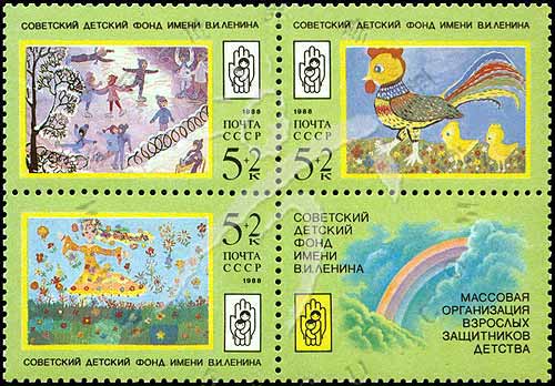 Sc#B148a 列宁儿童基金会,会徽及儿童画附捐票3联+1枚附票