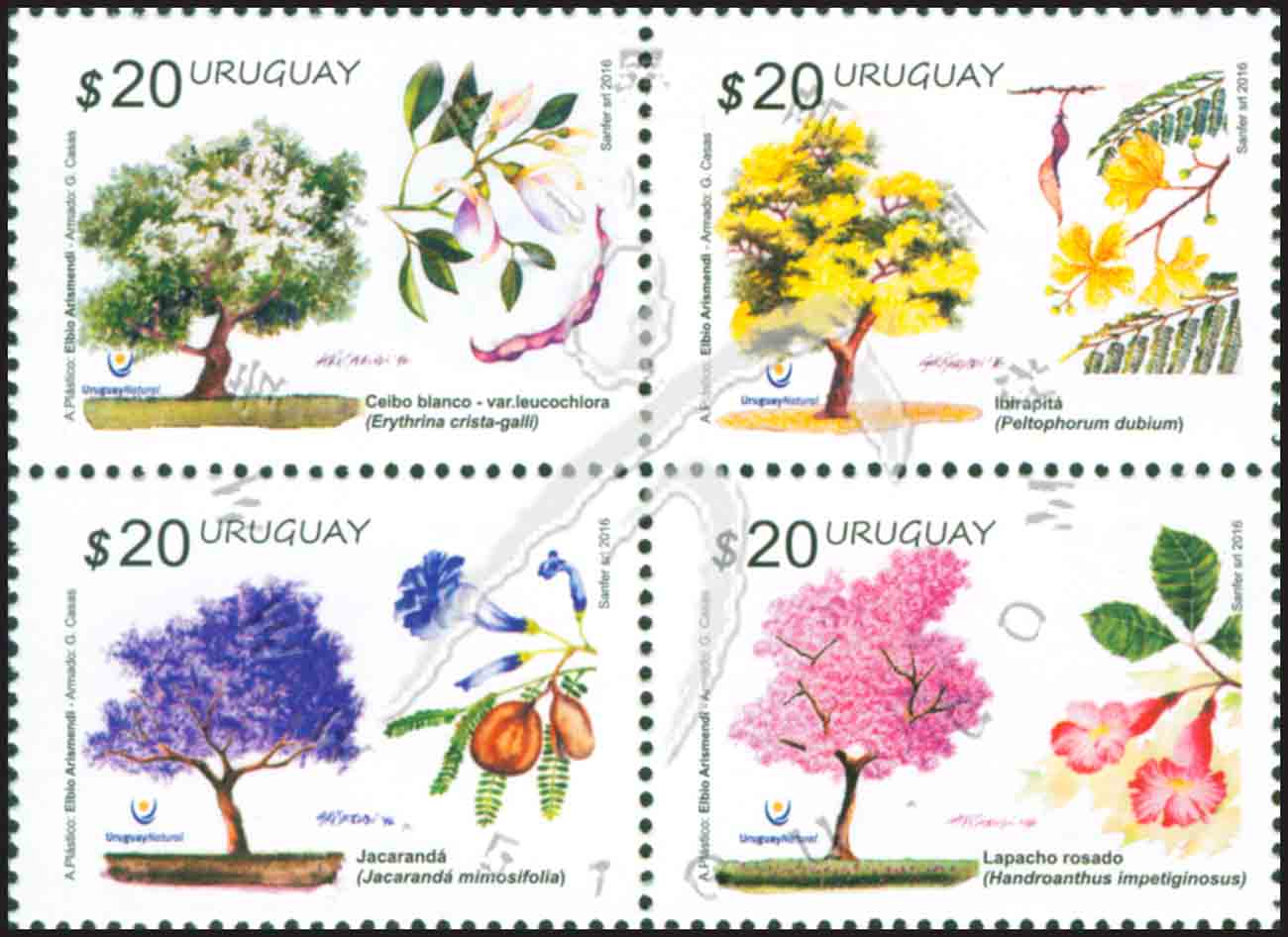 春天的树木,盾柱木、蓝花楹及粉红紫檀树等4方联