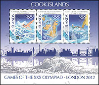 邮票介绍:伦敦第30届奥运会系列一,游泳运动、版图及帆船运动小全张(3票)