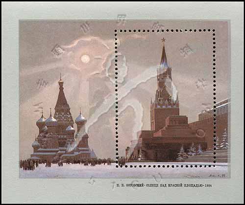 Sc#5610 奥斯索夫斯基绘画《阳光照耀下的红场》小型张50k