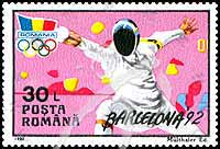 Sc#3754 巴塞罗纳第25届奥运会,击剑30I (8-6) 1枚