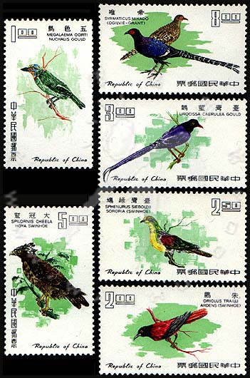 台湾鸟类(1),五色鸟、朱鹂、台湾绿鸠、台湾蓝鹊、大冠鹫及帝雉6全