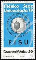 Sc#1178 墨西哥城第10届世界大学生运动会,足球50c (5-1) 1枚