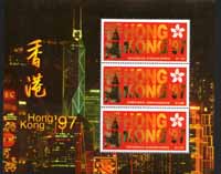香港回归,紫荆花、新中银大厦及香港夜景小全张(3票)