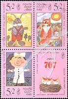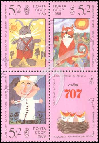 Sc#B159a 儿童画,《小兔》、《红色的猫》、《医生》3联带附票
