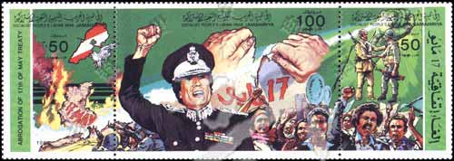 Sc#1197a-c 废除5.17条约,地图、军队及卡扎非(3联) 1枚