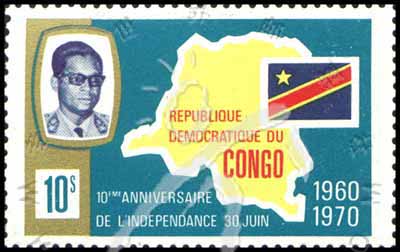 Sc#663 独立10周年,蒙博托总统、地图、国旗10s (7-1) 1枚