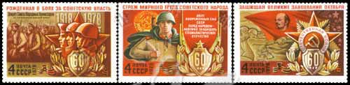 Sc#4637-39 苏联武装力量60周年,红军等4k (3全) 1枚