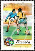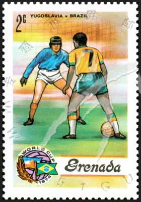 Sc#555 慕尼黑世界杯,南斯拉夫与巴西比赛及国旗2c (8-3) 1枚