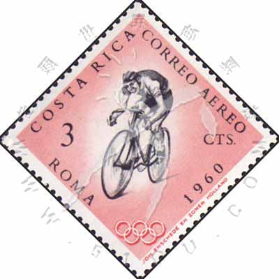 Sc#C305 罗马第17届奥运会,自行车航空票3c (10-3) 1枚