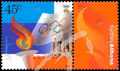 Sc#1873 悉尼奥运会,火炬、雅典巴特农神庙45c (2-1) 1枚带边纸