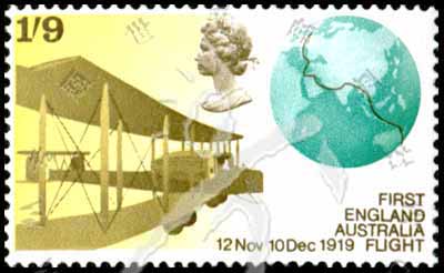 Sc#588 英澳首航成功50年,V.威米的飞机与地球仪1.9sh (5-5) 1枚