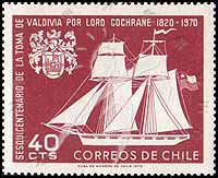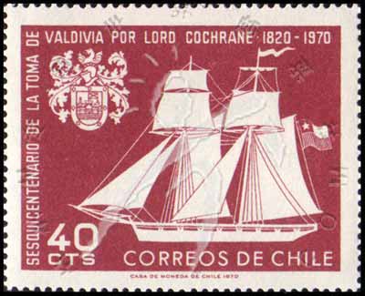 Sc#384 攻占瓦尔迪维亚150周年,帆船与市徽40c 1全