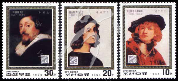 布鲁塞尔1990世界邮展—绘画,伦勃朗、拉斐尔及鲁本斯的自画像3全