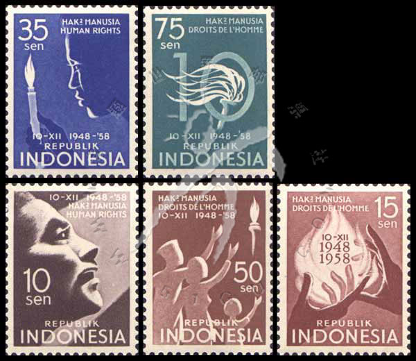 人权宣言10周年,仰望光明、手、火焰、妇女手持蜡烛、心向火炬及数字"10"等5全