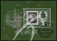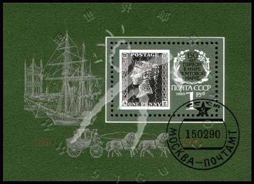 Sc#5879 伦敦邮展及黑便士150年,徽志及黑便士票中票小型张1r