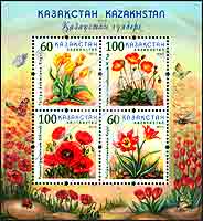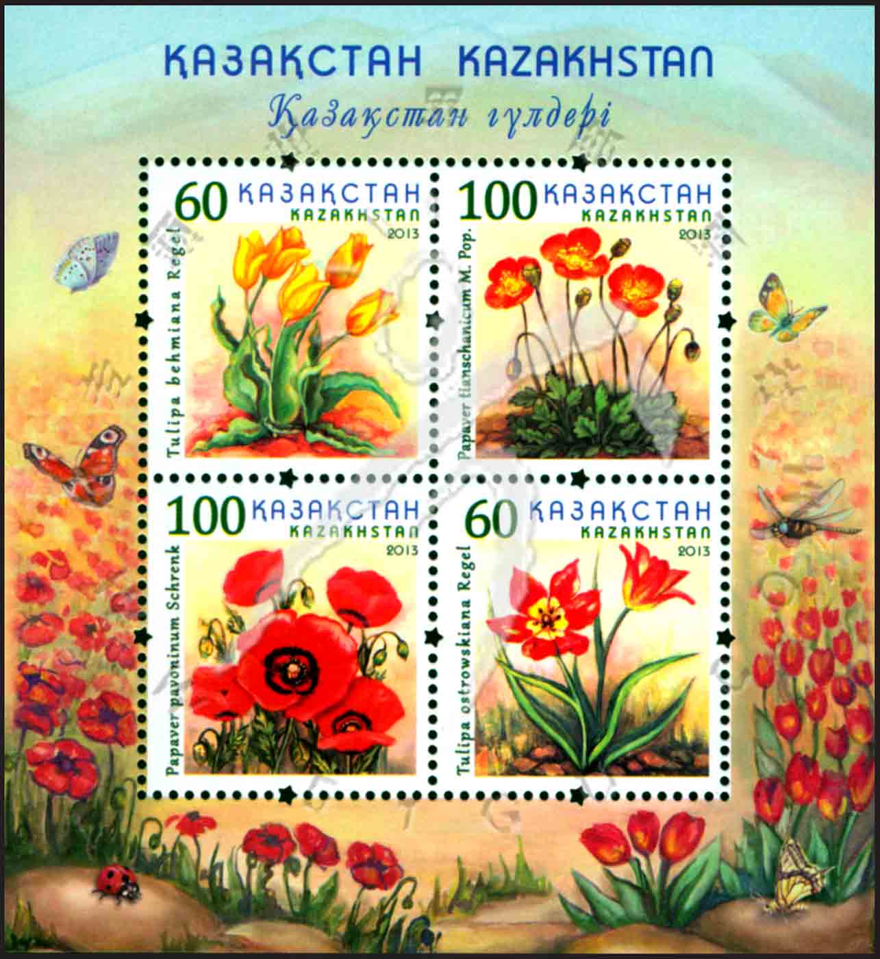 花卉,迟花郁金香、天山罂粟、黑环罂粟及苏联郁金香小全张(4票)