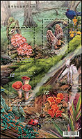 台湾野生蘑菇系列三,葡萄状枝瑚菌、高羊肚菌、铆钉菇及橙黄网孢毒菌小全张(4票)