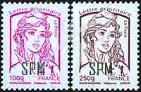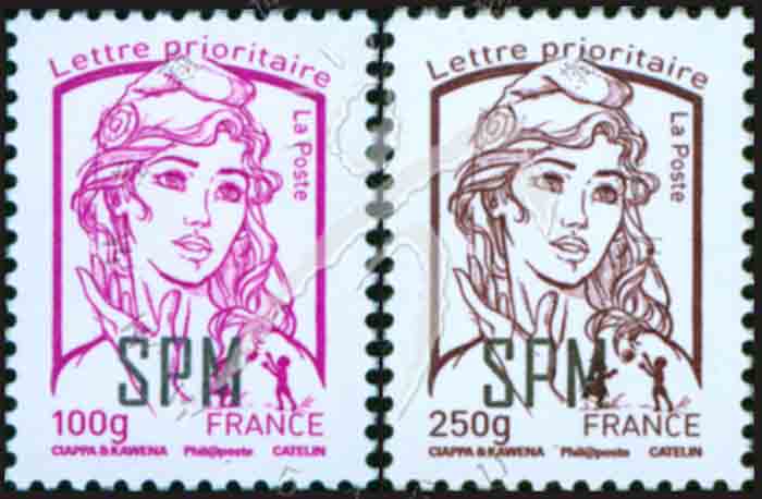 新版法国民族象征玛丽安娜肖像雕刻版加盖高面值票2全