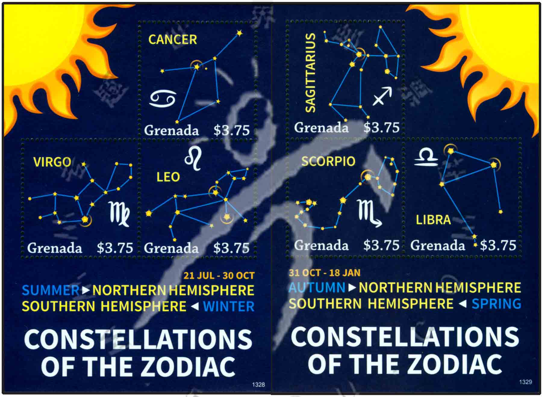 星座,巨蟹座、处女座、狮子座、人马座、天蝎座及天秤座2枚小全张(各3票)