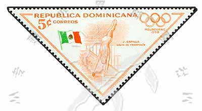 Sc#487 墨尔本奥运男子跳水冠军墨西哥胡·卡皮拉三角票5c (8-4) 1枚