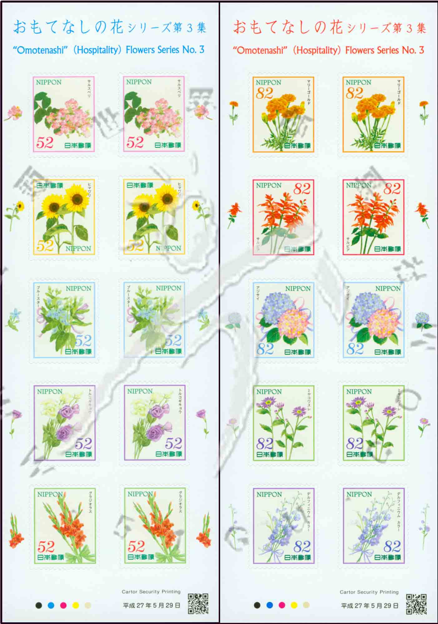 怡人的花卉系列三,紫薇、向日葵、蓝星、洋桔梗、剑兰、万寿菊、鼠尾草、绣球、日本裸菀及唐菖蒲等2枚不干胶自贴小版张(各10票)