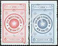 纽约2016年世界邮展,徽志不干胶自贴票2全