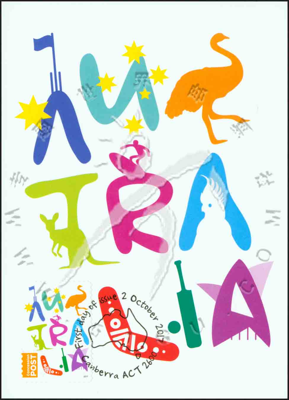 澳大利亚邮政针对特定人群发行的特许邮票,字母、袋鼠、鹦鹉、驼鸟剪影等极限片1全