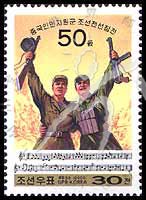 中国人民志愿军赴朝作战50周年,高举枪支的中国人民志愿军及朝鲜人民军1全