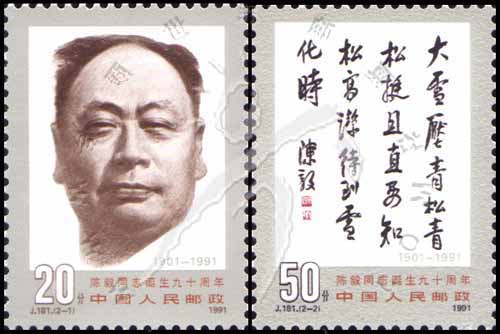 (J181)陈毅诞生90年1枚(面值为0.2, 0.5)