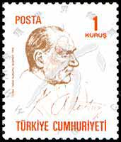 Sc#1832 土耳其第一任总统—凯末尔元帅及其亲笔签名1k 1枚