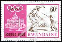 Sc#268 墨西哥城第19届奥运会,击剑和60罗马字样60c (6-3) 1枚