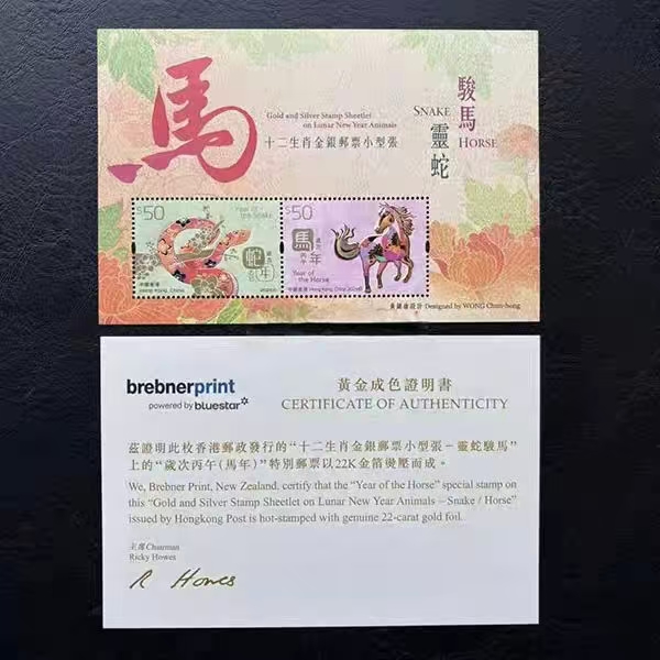 香港2026年生肖马金银小型张1全骏马灵蛇