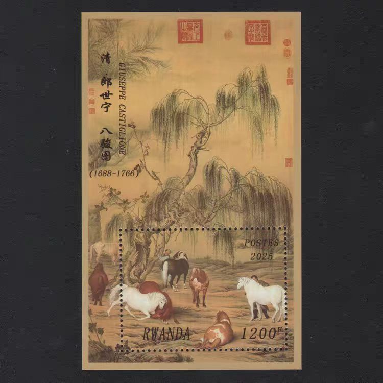 卢旺达2025年生肖马小型张清代郎世宁《八骏图》名画