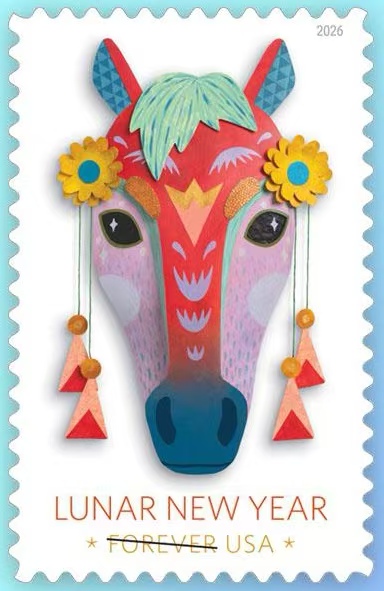 美国2026年生肖马邮票1全面具马