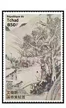 乍得2022年非洲6国联合发行中国书画名家文徵明《溪桥策扙图》邮票1全