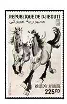 吉布堤2022年非洲6国联合发行中国书画名家徐悲鸿《奔腾图》邮票1全