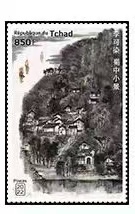 乍得2022年非洲6国联合发行中国书画名家李可染《蜀中小景》邮票1全