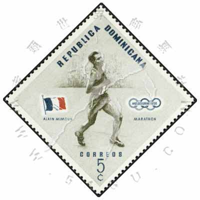 Sc#482 墨尔本奥运马拉松冠军法国埃·米蒙菱形票5c (8-4) 1枚