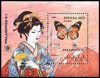 蝴蝶及日本仕女图,1991年日本国际邮展加盖小型张