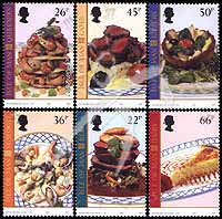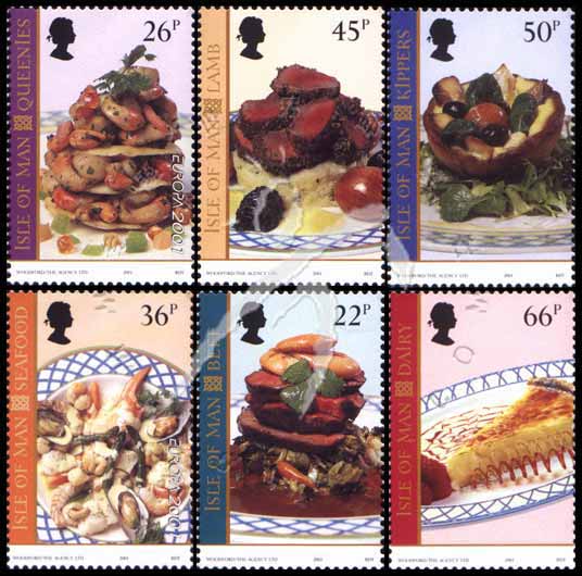 马恩岛风味食品,奶制品、鲱鱼干、小羊肉、海味、奎尼及牛排6全(其中2枚为欧罗巴邮票)