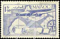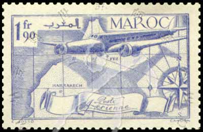 Sc#C22 飞机与摩洛哥地图航空邮票1.90fr (7-3) 1枚